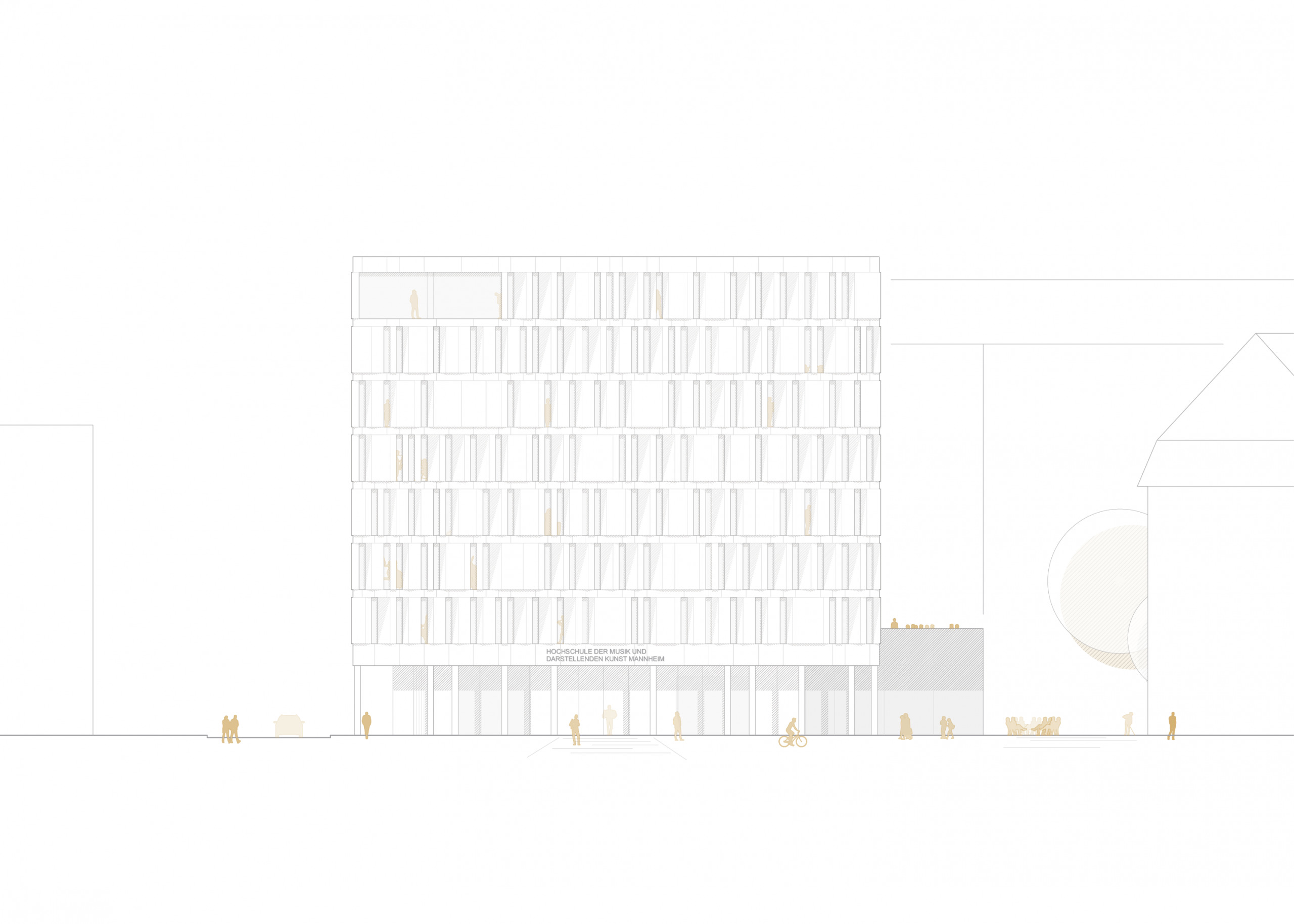 The State University of Music and Performing Arts Mannheim plans an extension in the city center. For this purpose, a new building is to be constructed on the N7 square. In addition to publicly accessible concert and dance halls, the new location will provide rehearsal spaces for musicians and students of the performing arts. The project aims to create a new campus connected to the existing university buildings, establishing a central hub for Mannheim’s music institutions.