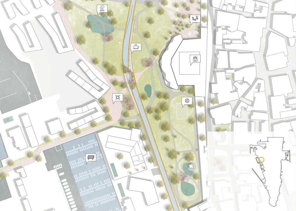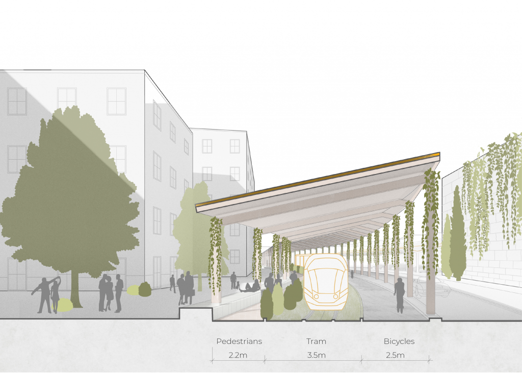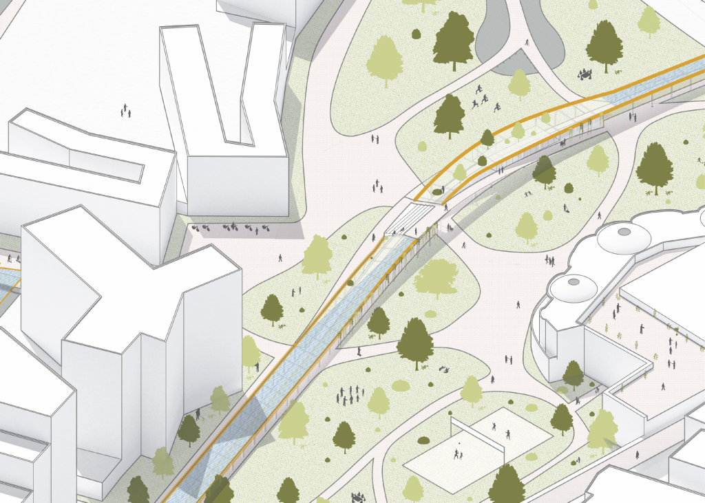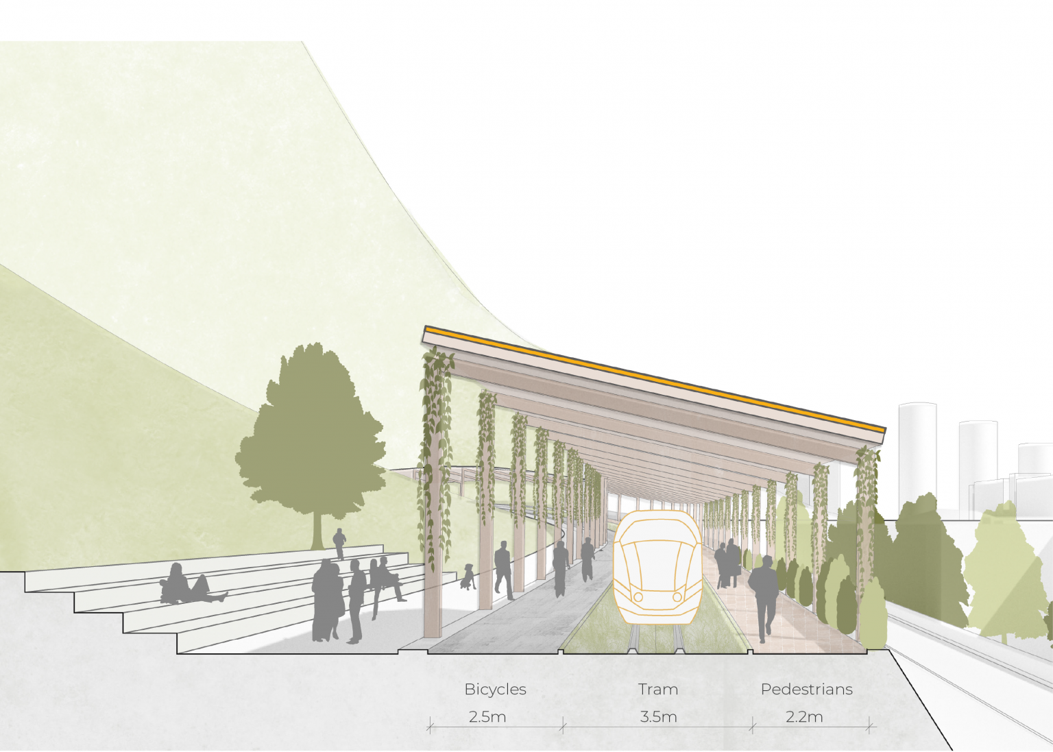 Beyond mobility, the ring railway functions as a structural backbone for further urban development. It enables the integration of green spaces, supports compact and mixed-use development, and creates opportunities for decentralized energy production along the route. The project demonstrates how infrastructure can act as a catalyst for ecological, spatial, and social transformation.