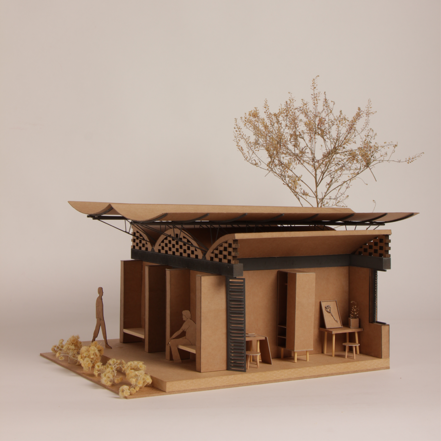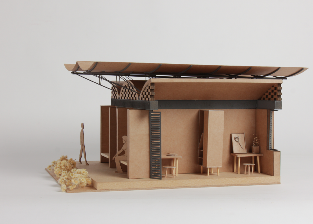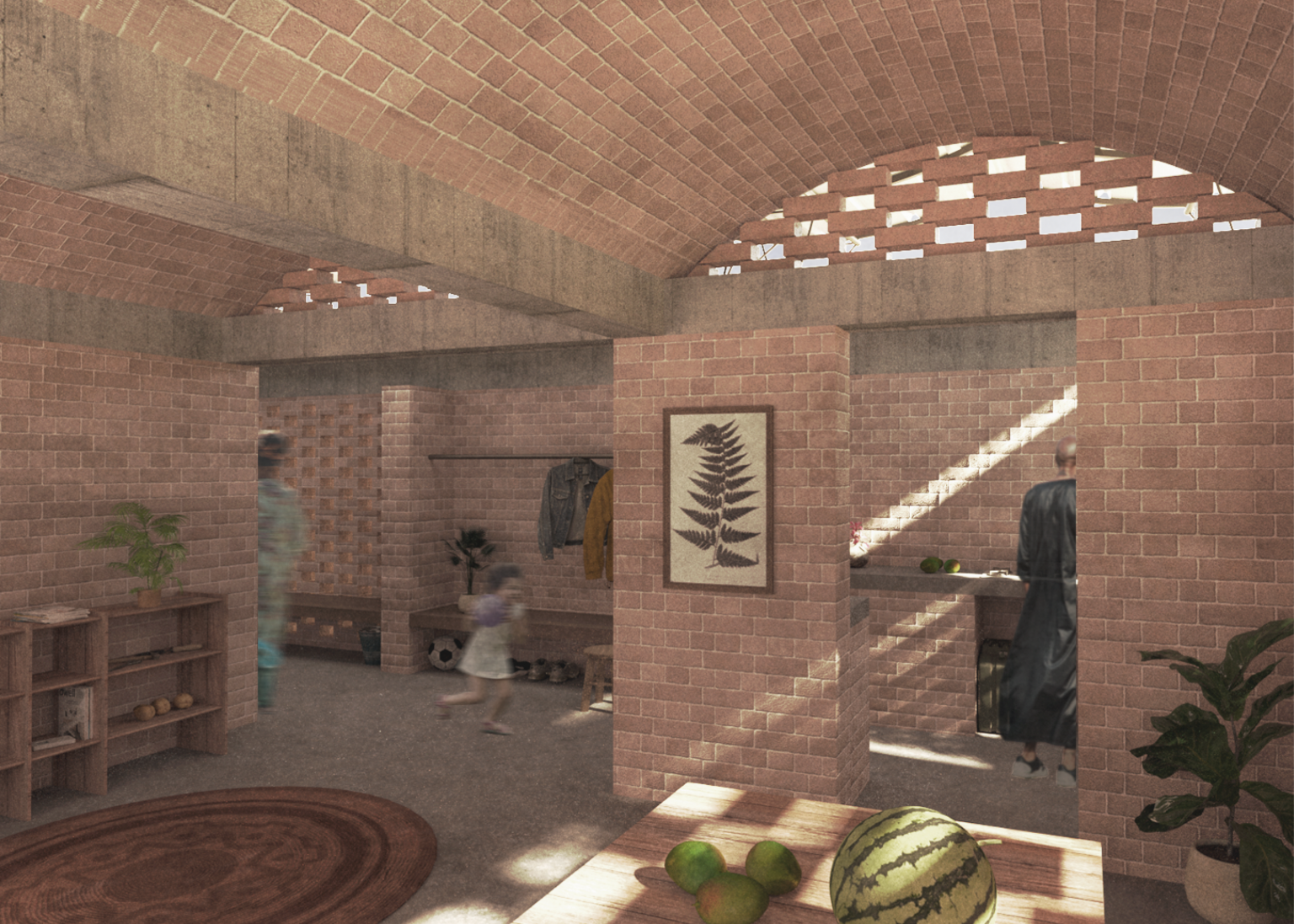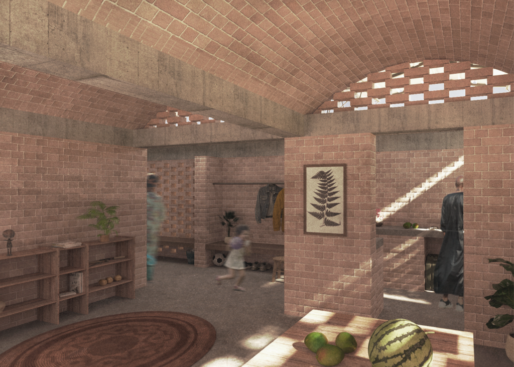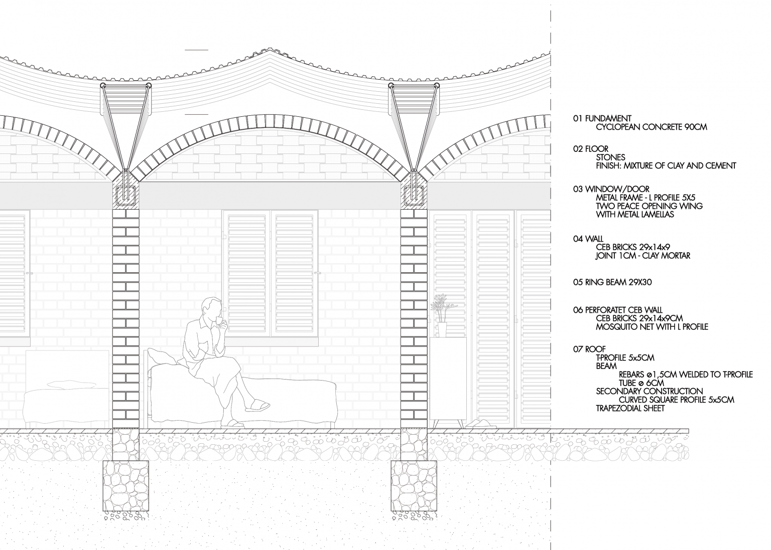the teachers‘ accommodation, the students‘ accommodation, the school and the production towns. In between are natural elements such as mango plantations and teaching fields.