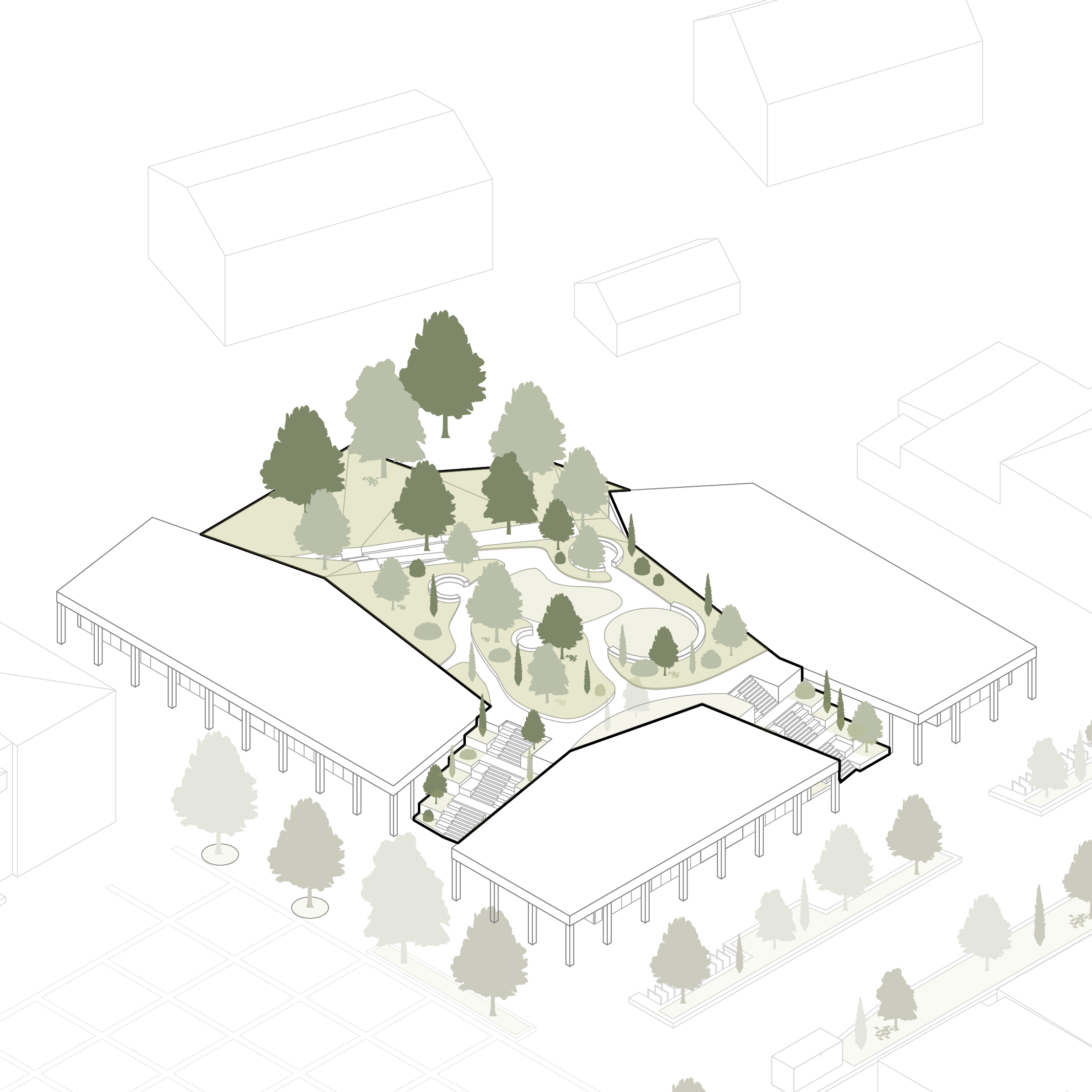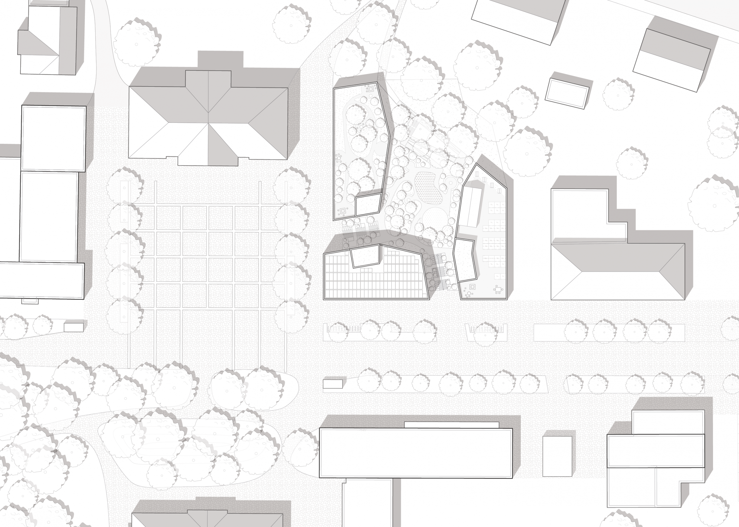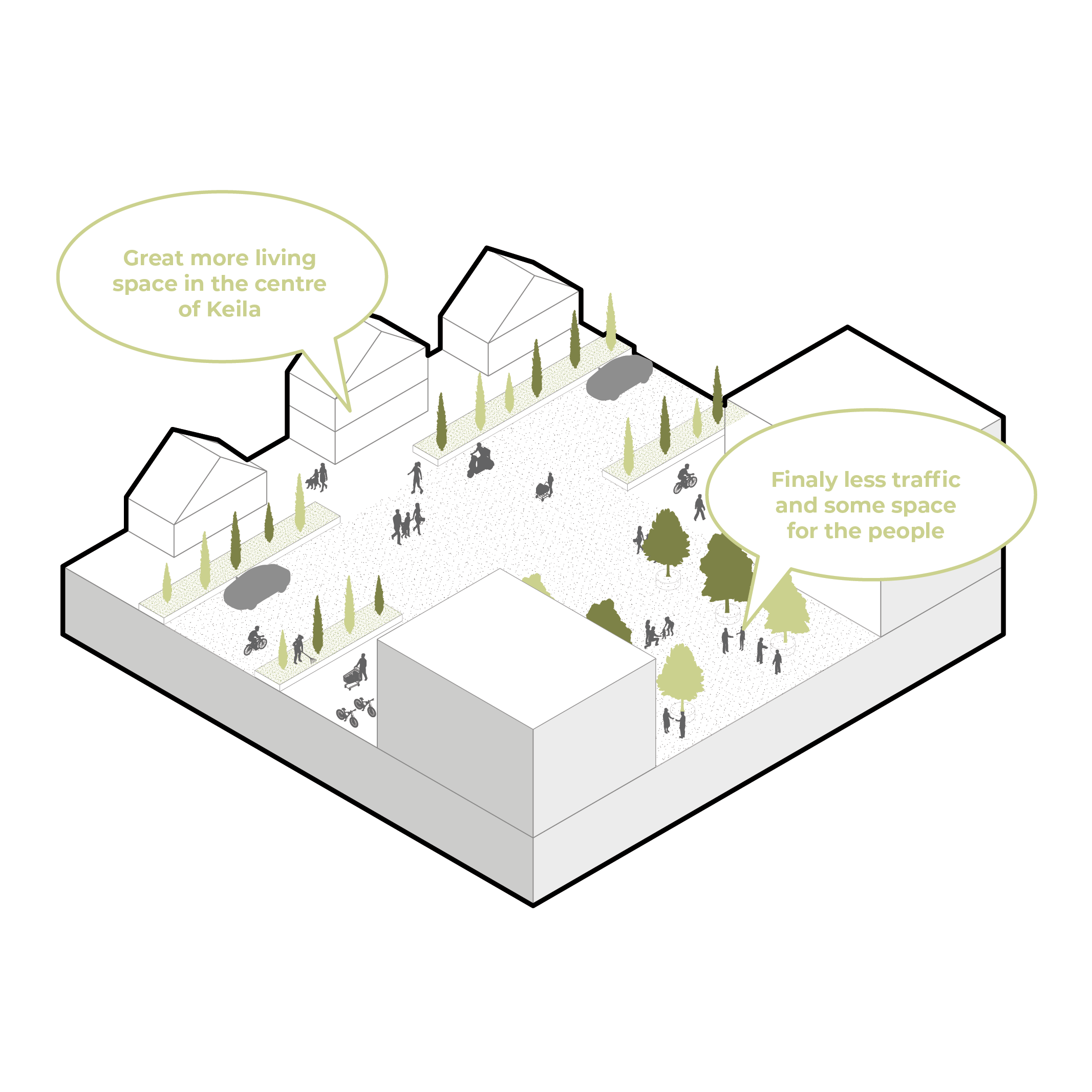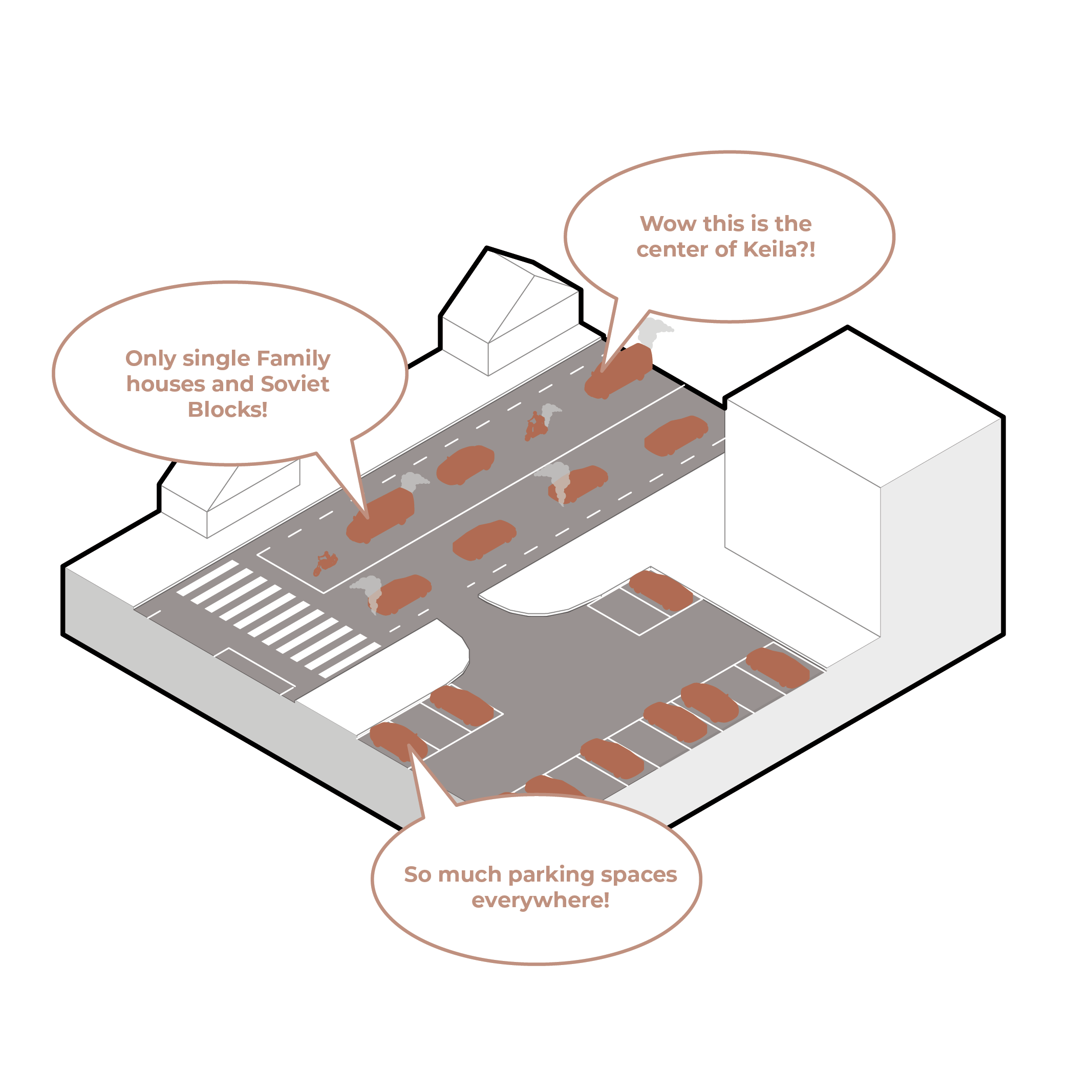 As part of the semester, an urban analysis was conducted in Keila, a small town within the wider catchment area of Tallinn. Based on this analysis, a site for targeted development was identified. My focus was on the central town square, which currently does not live up to its full potential. The surrounding built fabric is characterized by single-family houses and residential blocks, while car traffic and parking areas dominate the public space.