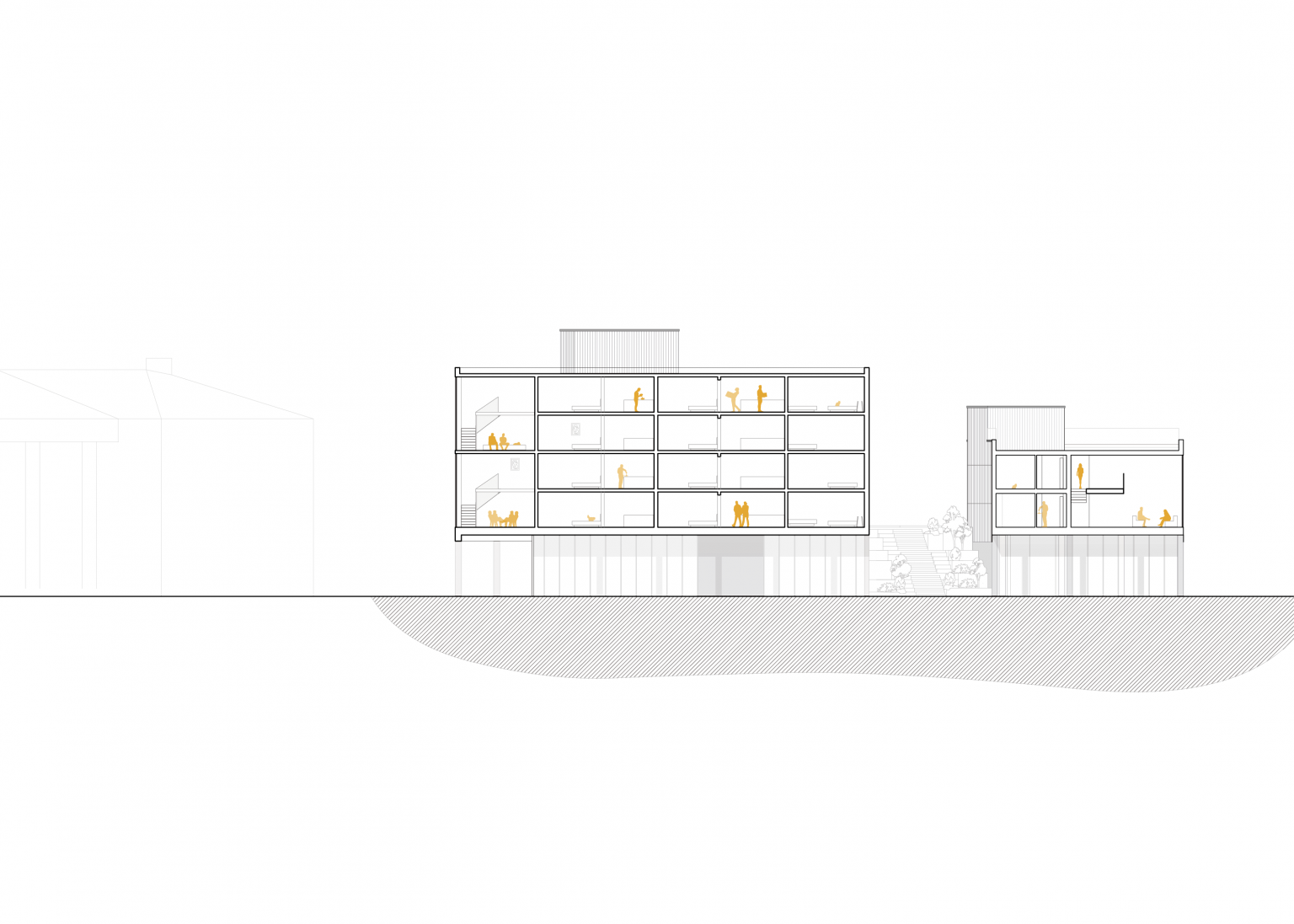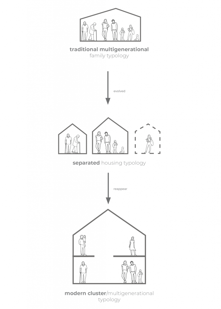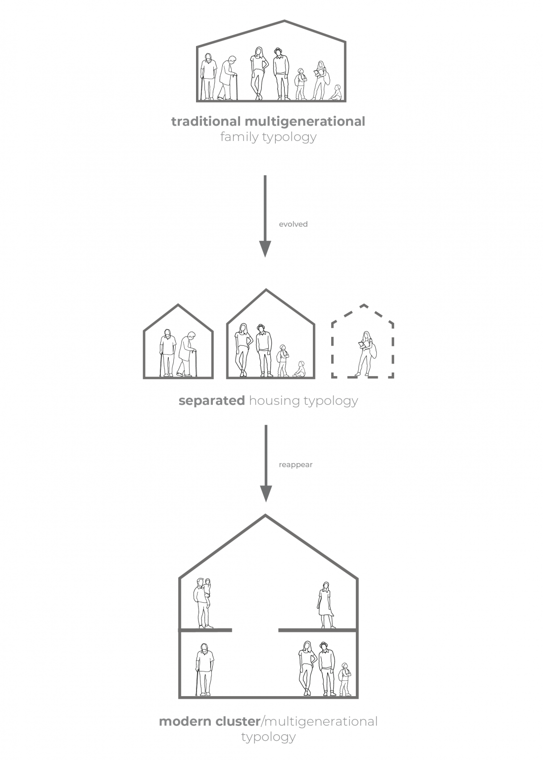 As part of the semester, an urban analysis was conducted in Keila, a small town near Tallinn, leading to the selection of the central town square as a site for development. Currently dominated by cars and parking, the area lacks spatial and social quality. The project proposes a multi-generational cluster that reinterprets the existing typology, activating the ground floor with public uses and creating shared, barrier-free spaces that promote community and interaction.